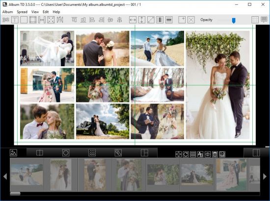 Only album design software for designing all spreads at once, including backgrounds, masks, cliparts and of course image rotations and opacity variations.