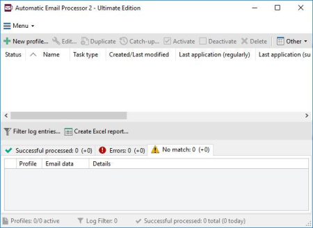 For this, various filters, flexible configuration options, such as individually definable storage folders and the possibility of subsequent processing are available. For example, the path of the location where you want Automatic Email Processor to save certain emails or email attachments, can be assembled dynamically from individual properties of an email. For storing email messages, inter alia, the output format can be specified (for example, PDF, RTF, or HTML). The Outlook message format (MSG files) is for example particularly suitable to back up e-mails. The program supports the creation of an unlimited number of rules to allow separate settings for different email accounts. Rules can be additionally applied to emails of a specific period or to any previously received emails of an Outlook folder.