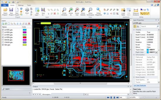 Gerbview will visualize your design, on the screen or in hardcopy. You no longer have to wait for a prototype circuit board to see your true design. GerbView supports both RS-274D and RS-274X Gerber formats, and you can use it to convert your older Gerber files to the new RS-274X extended format. The newer extended Gerber format contains embedded aperture information and minimizes the risk for errors during the manufacturing of the PCB.