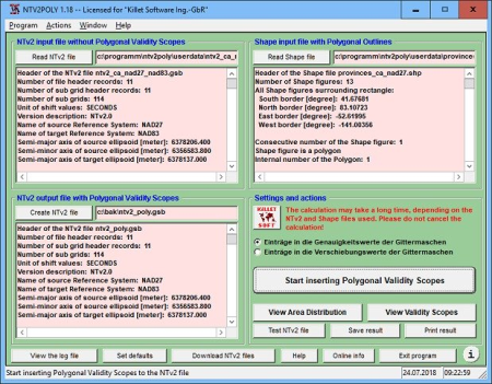 NTv2Poly is a specialized tool that enables you to include polygonal validity scopes into NTv2 binary files using just the outlines as they are stored in the shape files.