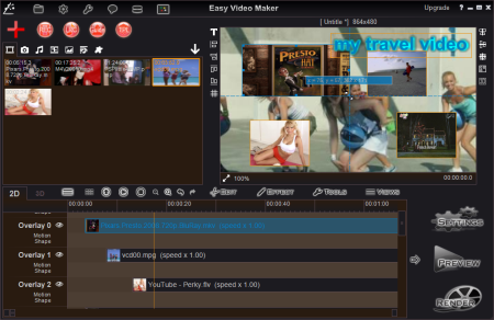 Easy Video Maker is a powerful and easy to use video editor program that's sure to meet just about every one of your video creation needs. With Easy Video Maker, we can easy to edit, create, make high quality 2D/3D videos/movies from various video clips, pictures/photos, audios/musics, texts, lyrics, subtitles, etc. Create/Make a Video